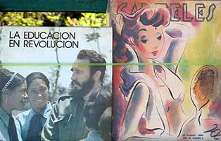 Ik houd erg van oude boeken en kan mijn hart hier ophalen. Maar er zit niet veel van mijn gading bij. De meeste boeken gaan over de revolutionaire geschiedenis van Cuba en de helden die daar bij horen. Ze zijn allemaal in het Spaans en ik ken de geschiedenis wel ongeveer. Het portret van Che Guevara staat op veel omslagen afgedrukt, zodat je er bij geen enkele boekenstal omheen kunt.