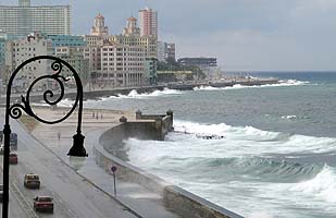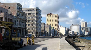 Eerst naar de Malécon, waarover de hele dag veel verkeer raast.